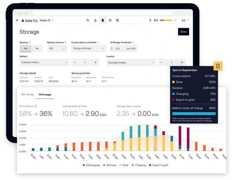 Add battery storage to every proposal with detailed calculations and engaging visuals to educate homeowners on why storage makes sense for them.
